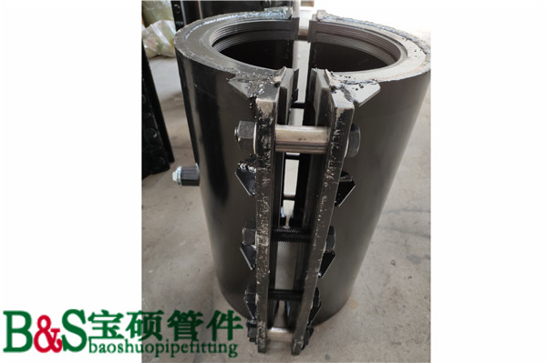 5.承插口哈夫节抢修特点:维修安装时不用停水停气可迅速止漏,省工省时。能做到滴水不漏,采用分块结构,现场施工速度快,无需停水,施工挖掘量小,仅需开挖很小的工作坑即可操作,节省大量的人力物力及时间,快速达到堵漏目的