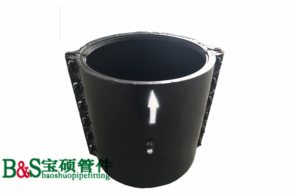 我公司生产的各种钢塑抢修节和管件均采用Q235钢材经压制、机械加工、焊接,内外表面经过喷砂、除锈、磷化、静电涂塑、高温烘烤固化处理而成,抢修节采用柔性橡胶密封圈组装成,执行标准为QR320281HA。