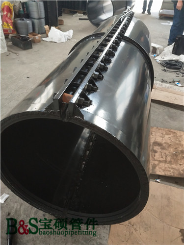 哈夫节是一种修复管道用的管道堵漏器,又称堵漏器,上、下处采用密封条密封,并由螺栓、螺母紧固为一体,其结构简单,使用方便,可广泛应用于给排水和各种液体、气体、压力管道的沙眼、气孔、横向、纵向断裂造成的漏水漏气故障,省工、省时、节约费用。哈夫节分承插哈夫节,弯头哈夫节,三通哈夫节,法兰哈夫节等都是管路抢修装置,承插哈夫节是对两管子连接处的承口处漏水进行抢修的装置,其它哈夫节是对相应漏水部位进行抢修的装置,该装置结构简单只有两件本体和两件橡胶垫组成的,安装方便,只将两本体对合在漏水处拧紧螺母即可完成对管道的抢修,用该装置既可节省停水的时间,又可降低抢修成本。