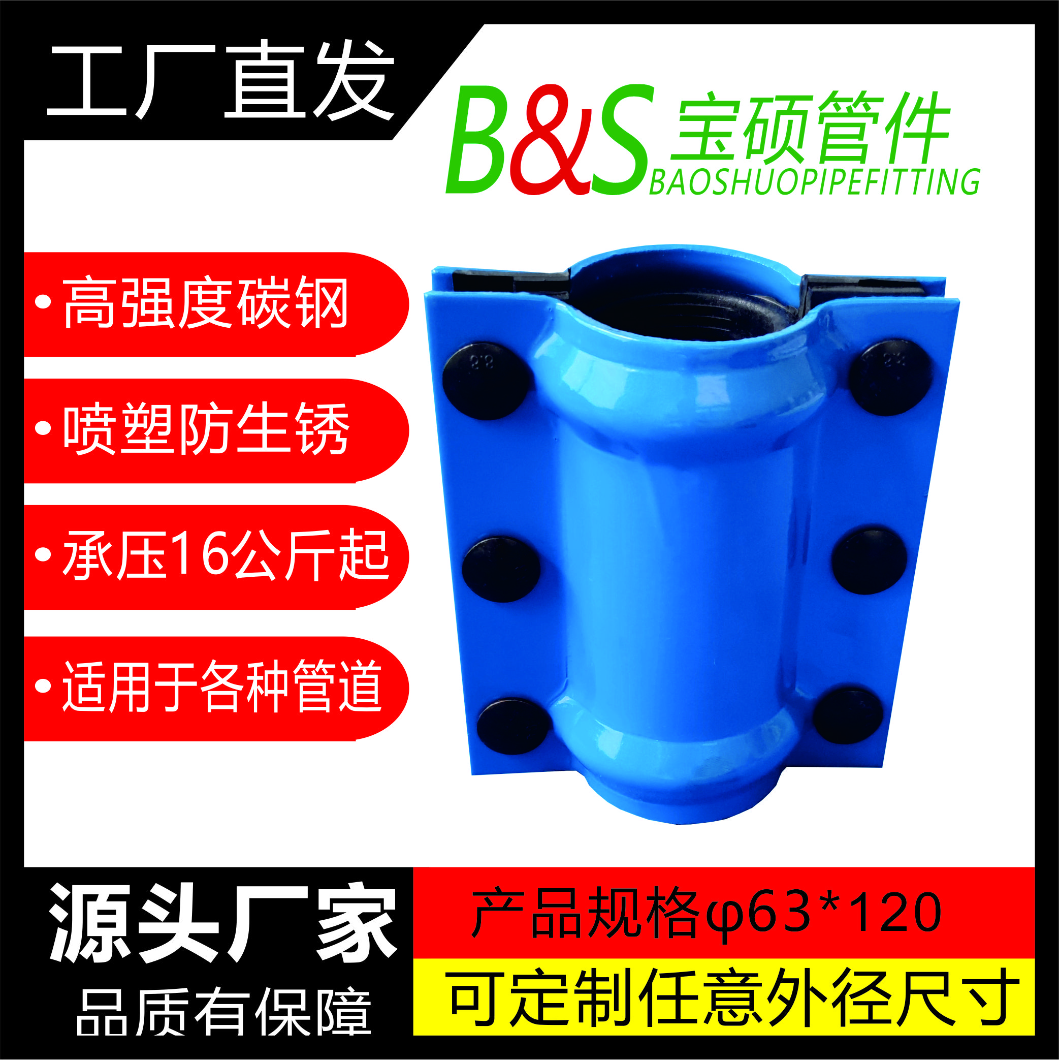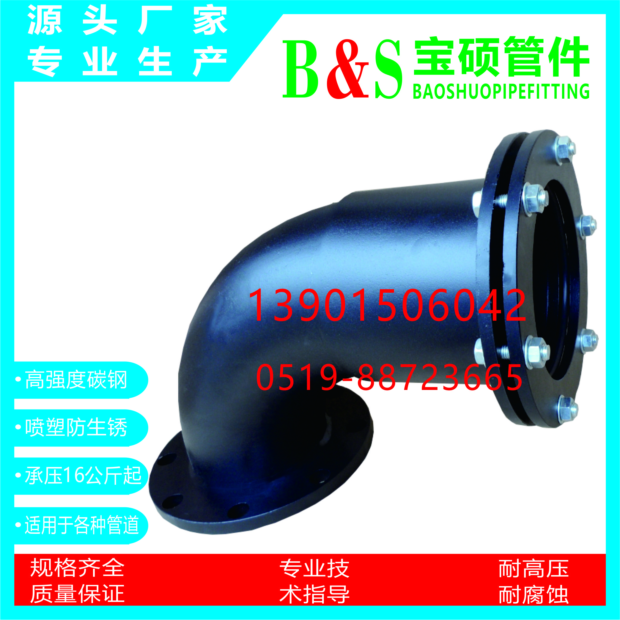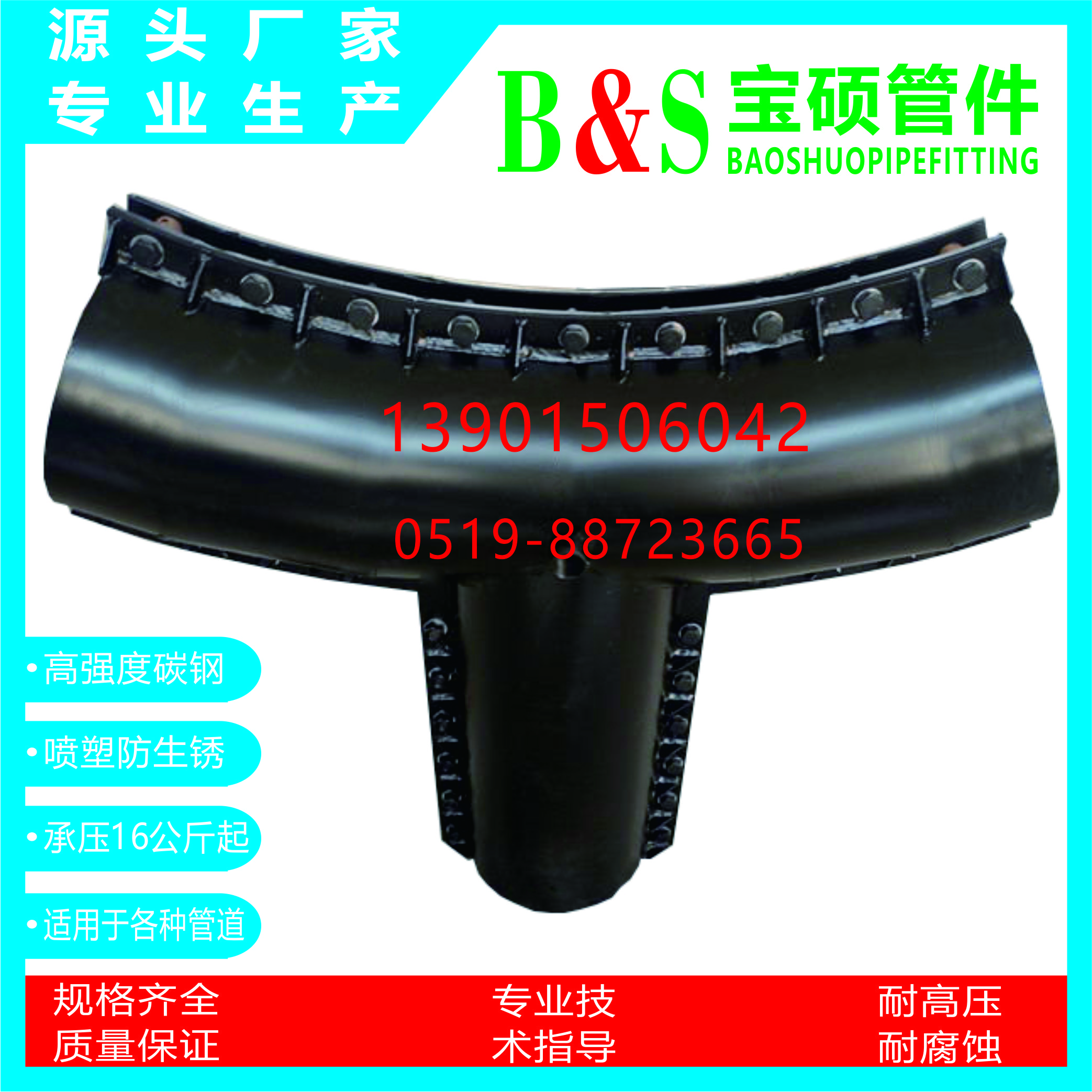 常州市宝硕管件有限公司【常州市宝硕宏图管道配件有限公司】是生产各种管道哈夫节,三通哈夫节,弯头哈夫节,异径等管件哈夫节;高压哈夫节,耐油哈夫节,耐高温哈夫节,耐腐蚀哈夫节,碳钢哈夫节,304.316.316L不锈钢哈夫节。马鞍三通管卡,四通管卡;哈夫三通管卡,四通管卡;承插钢塑管件;柔性快速接口.........