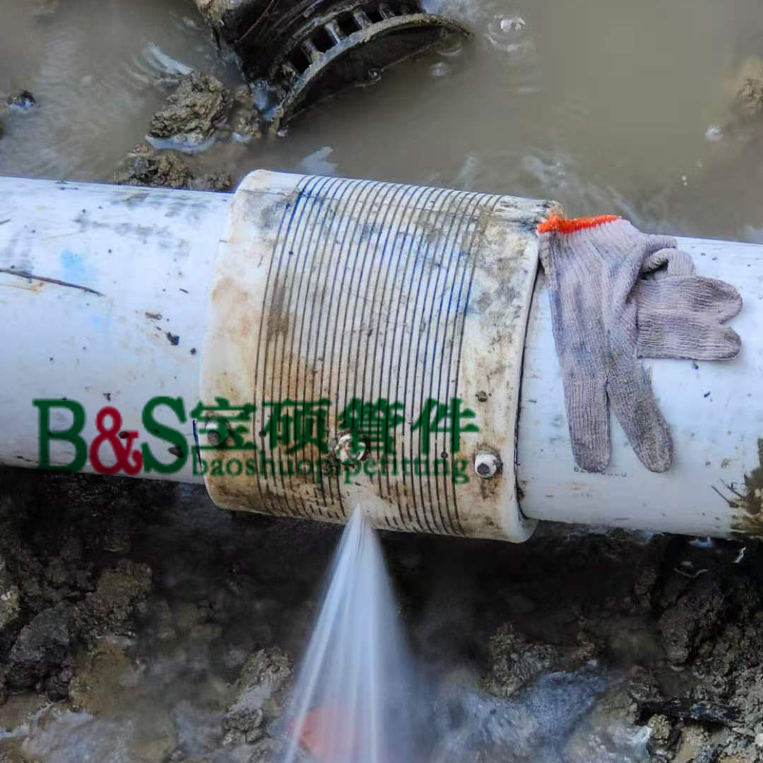 1. 本产品适用于各种管道如铸铁管,pvc管,pe管,水泥管,钢管等不同材质的管材的承插口,套筒处泄漏的抢修,不需要停水,在泄漏处安装后能快速堵漏,保障管道正常供水供气,该产品采用机床精加工,应用塑形接触密封及弹性接触密封两种技术,密封效果并适用各种材质的管道,有效的控制了介质的泄漏问题