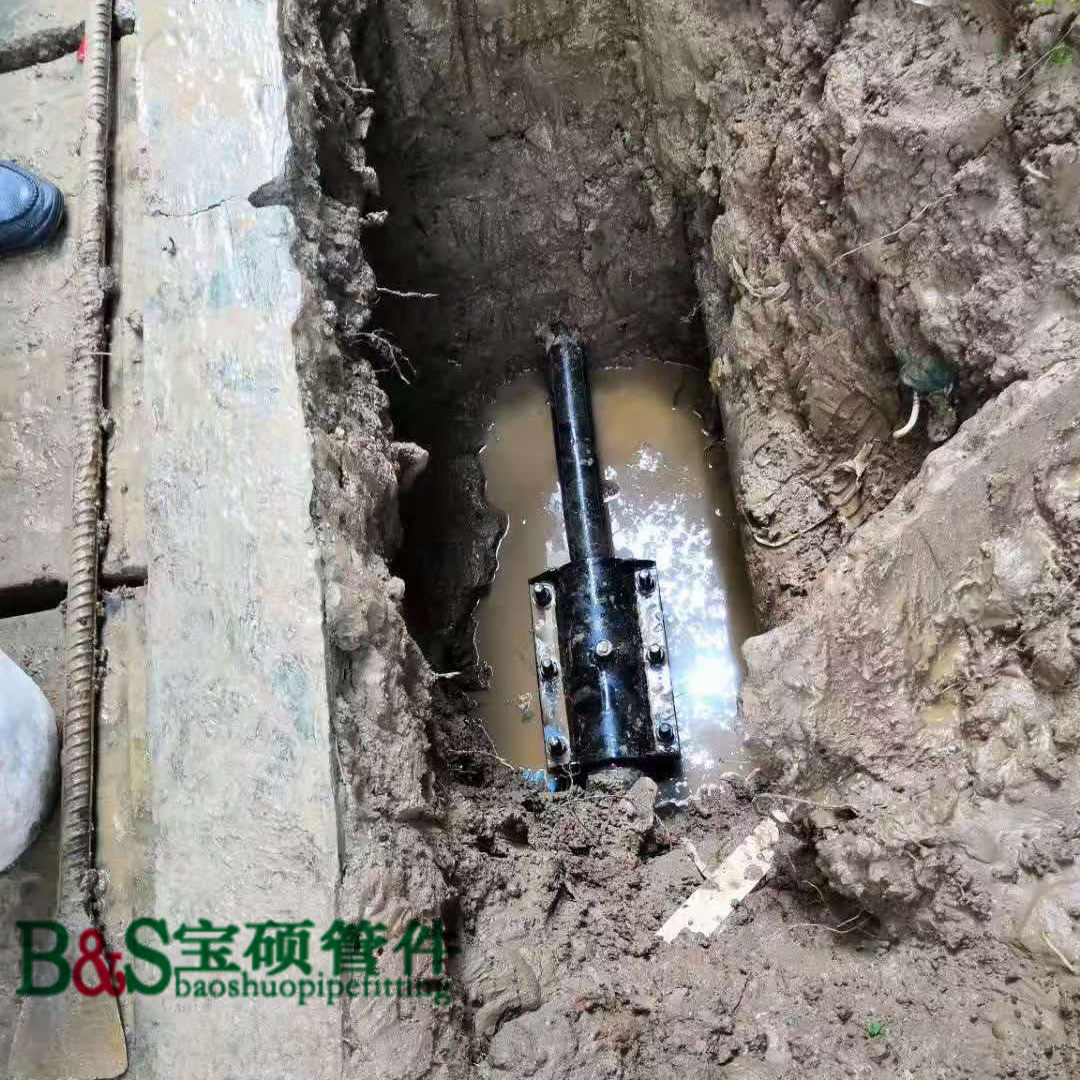 5. 承承口哈夫节抢修特点:维修安装时不用停水停气可迅速止漏,省工省时。能做到滴水不漏,采用分快结构,现场施工速度快,无需停水,施工挖掘量下,仅需开挖很小的工作坑即可操作,节省大量的人力物力及时间,快速达到堵漏目的