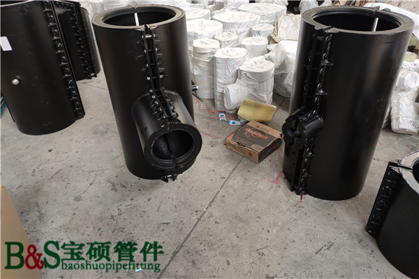 5.哈夫节抢修特点:维修安装时不用停水停气可迅速止漏,省工省时。能做到滴水不漏,采用分块结构,现场施工速度快,无需停水,施工挖掘量小,仅需开挖很小的工作坑即可操作,节省大量的人力物力及时间,快速达到堵漏目的