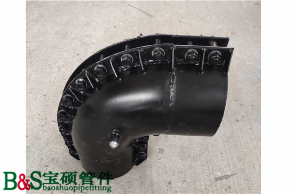 5.弯头哈夫节抢修特点:维修安装时不用停水停气可迅速止漏,省工省时。能做到滴水不漏,采用分块结构,现场施工速度快,无需停水,施工挖掘量小,仅需开挖很小的工作坑即可操作,节省大量的人力物力及时间,快速达到堵漏目的
