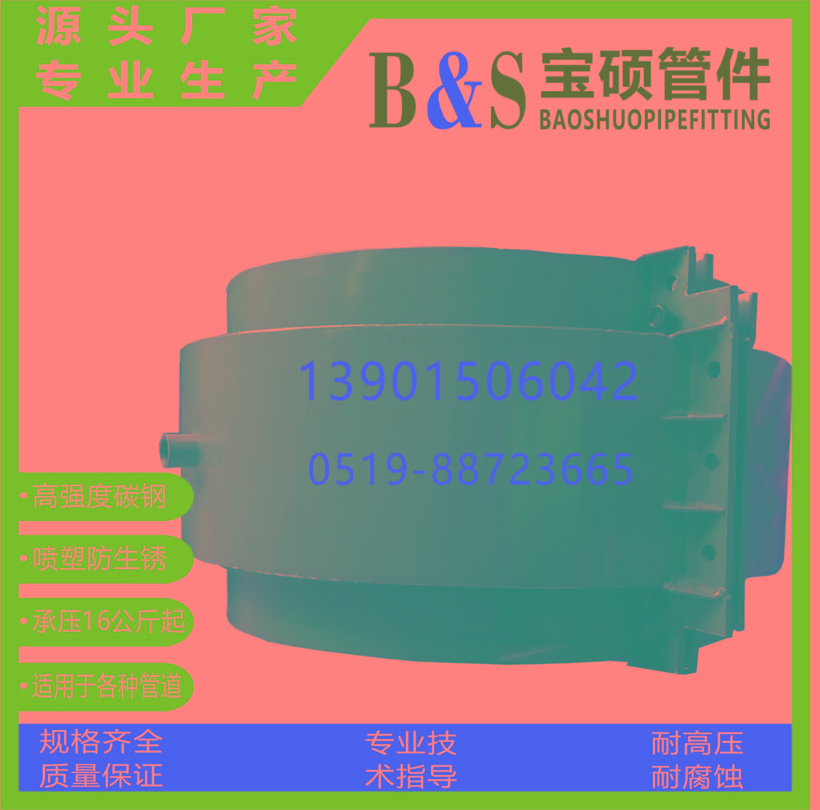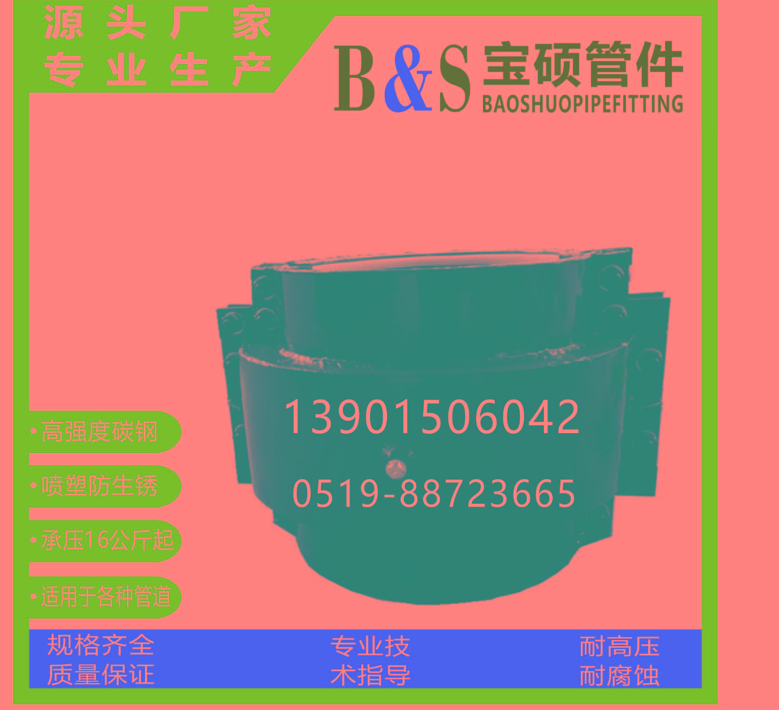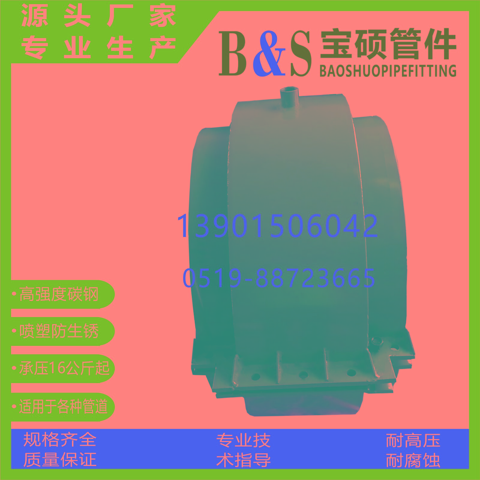 常州市宝硕管件有限公司专业生产:1.各种管道哈夫节,三通哈夫节,弯头哈夫节,异径哈夫节等管件哈夫节,高压哈夫节,耐油哈夫节,耐高温哈夫节,耐腐蚀哈夫节,碳钢哈夫节,304.316.316L不锈钢哈夫节。2.给水UPVC管件.3.给水HDPE管件;4.马鞍三通四通管卡,5.哈夫三通四通管卡,6.承插钢塑管件,7.活接快接钢塑管件【UPVC管.PVC-M管.ABS管.PE管.PPR管.PE复合管.钢管,铸管,玻璃钢管,水泥管等适用Φ20--4000mm 可任意定制】及模具开发、设计、制造及产品生产加工的专业企业。